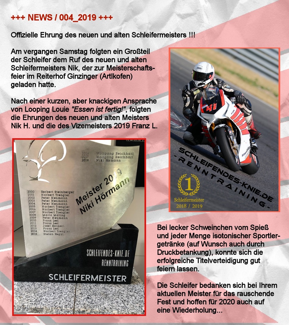 Und so werden in der Winterpause wieder ordentliche Umdrehungszahlen in den Garagen und Werkstätten der Schleifer produziert…schraub, schraub… J