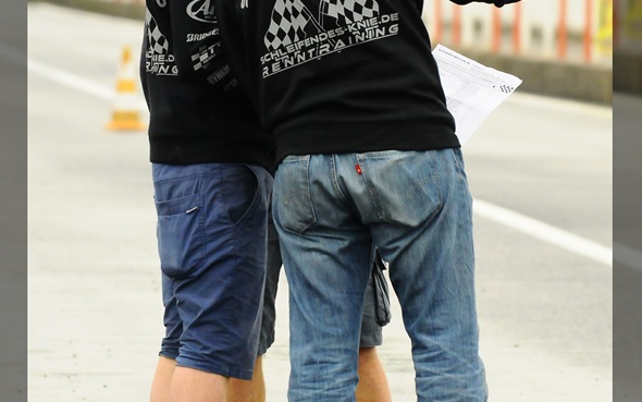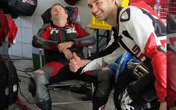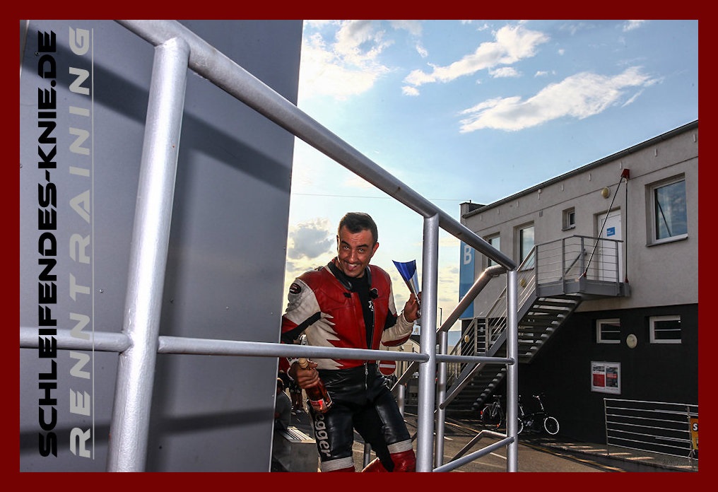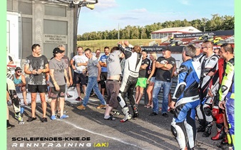 Am Freitagmorgen starteten nach der Fahrerbesprechung die ersten Gruppenturns bei sonnigen 25°C. Unsere Rennstreckenneulinge wurden wieder von unseren Instruktoren geführt, um das Streckenlayout und die Ideallinie besser vermitteln zu können. Schon nach den ersten Runden mussten einige Piloten zu Boden, geschuldet den schlechten Gripverhältnissen auf der Strecke oder auch einfach übermotiviert durch den bevorstehenden Gruppenwechseln in der Mittagspause. Jedoch ging die Sturzarie auch am Nachmittag weiter, da das Thermometer mittlerweile schnuckelige 29°C anzeigte, das Gripniveau immer schlechter und die Rundenzeiten langsamer wurden.