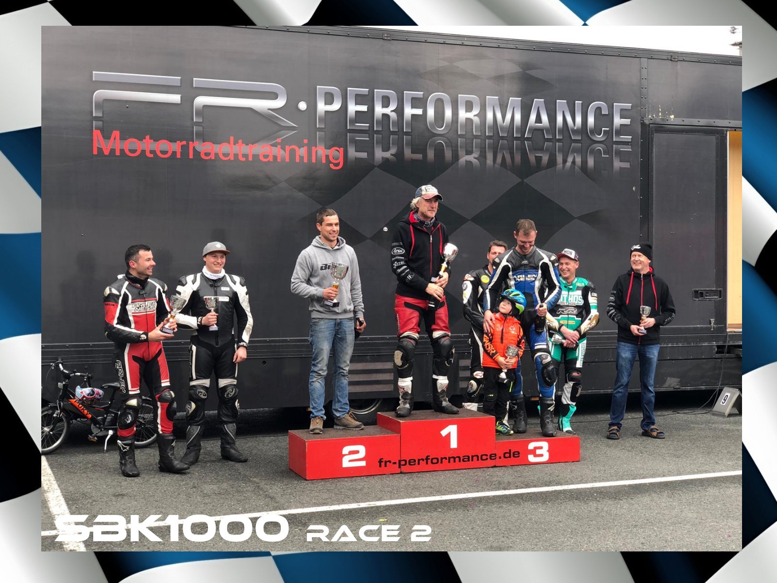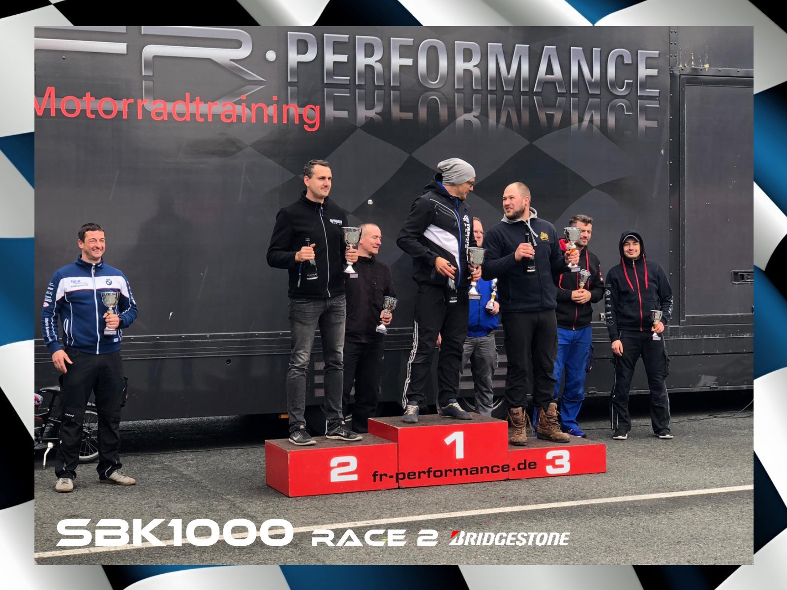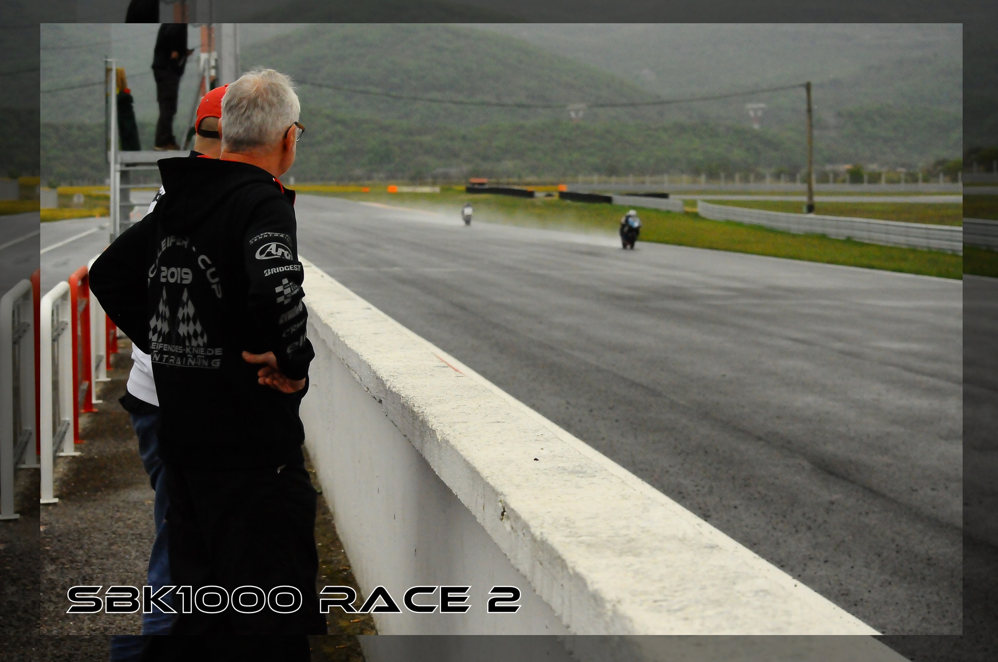 Über Nacht wurde der Regen stärker und hörte auch erst in den Morgenstunden wieder auf, so dass die Rennen 2 am Vormittag mit einem stark dezimierten Starterfeld als wet-race gestartet wurden. Die Strecke trocknete bei 7°C völlig unerwartet ab, sodass nach dem SBK700 Rennen, Slicks die bessere Reifenwahl gewesen wären. Christian O. konnte eben durch diesen Reifenpoker seinen ersten Gesamtsieg in der letzen Kurve (+0.018 Sek.) einfahren.