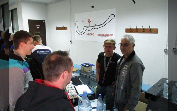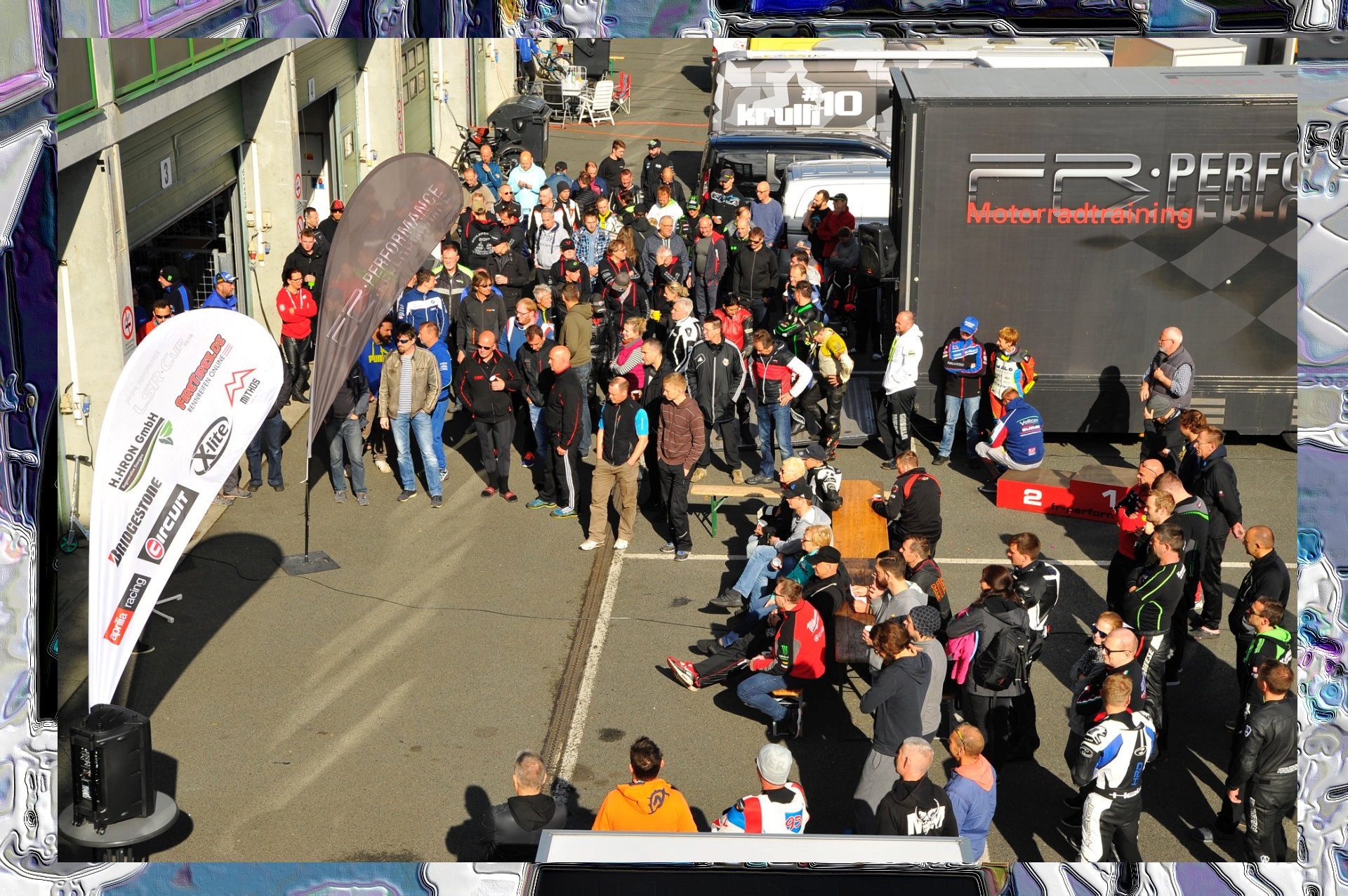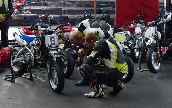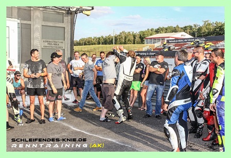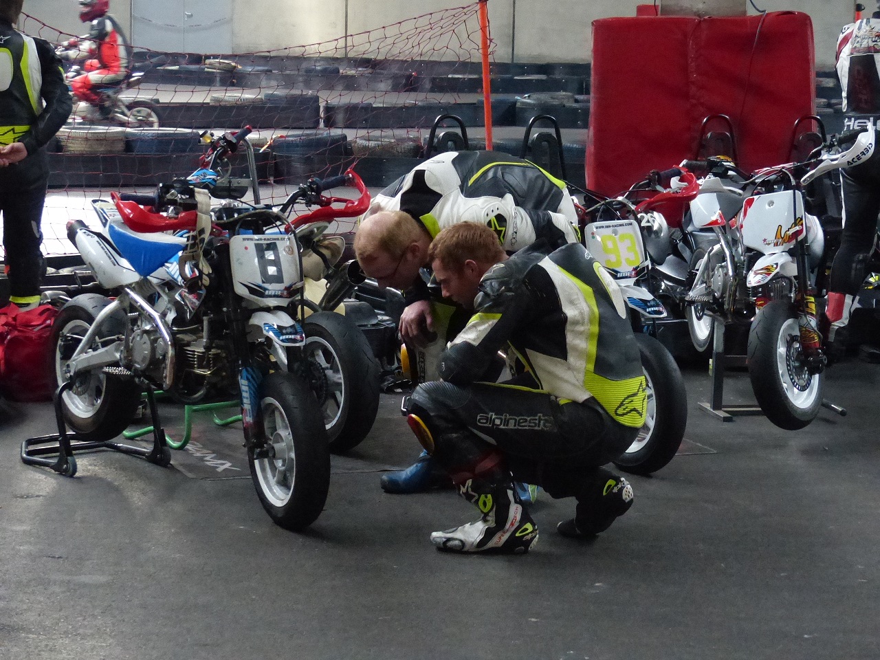Der Sonntag begann sehr früh, da es bereits um 8.00 Uhr hieß…Fahrerbesprechung und Einführung in die Welt der Pit-Bikes, geleitet und top erklärt von Werner.