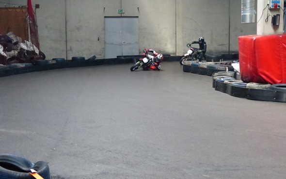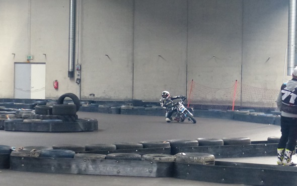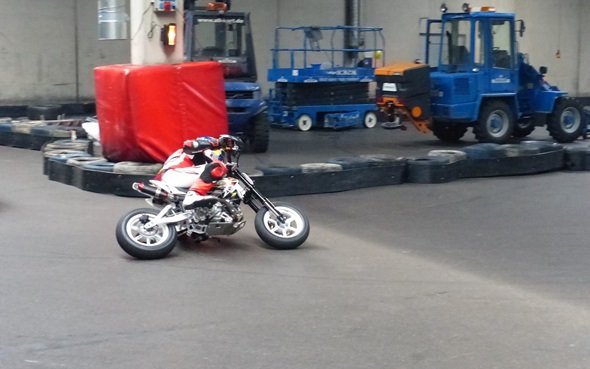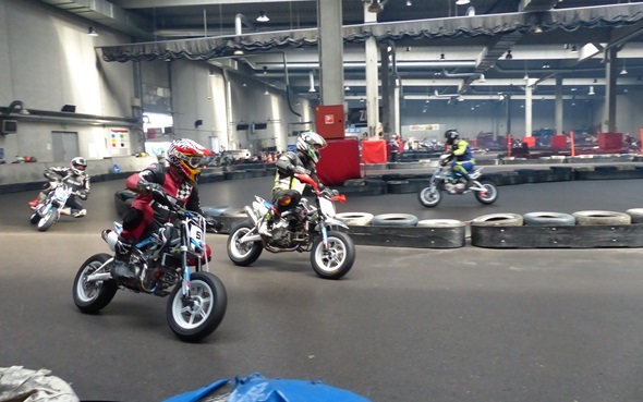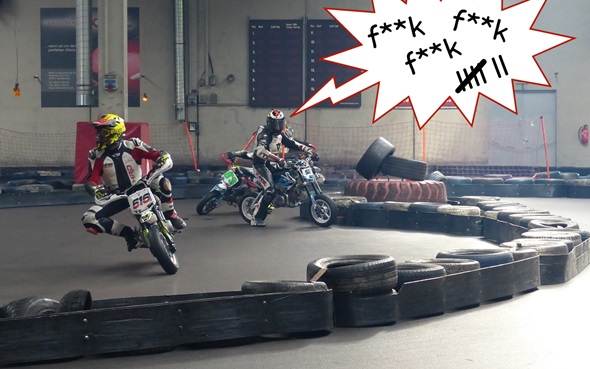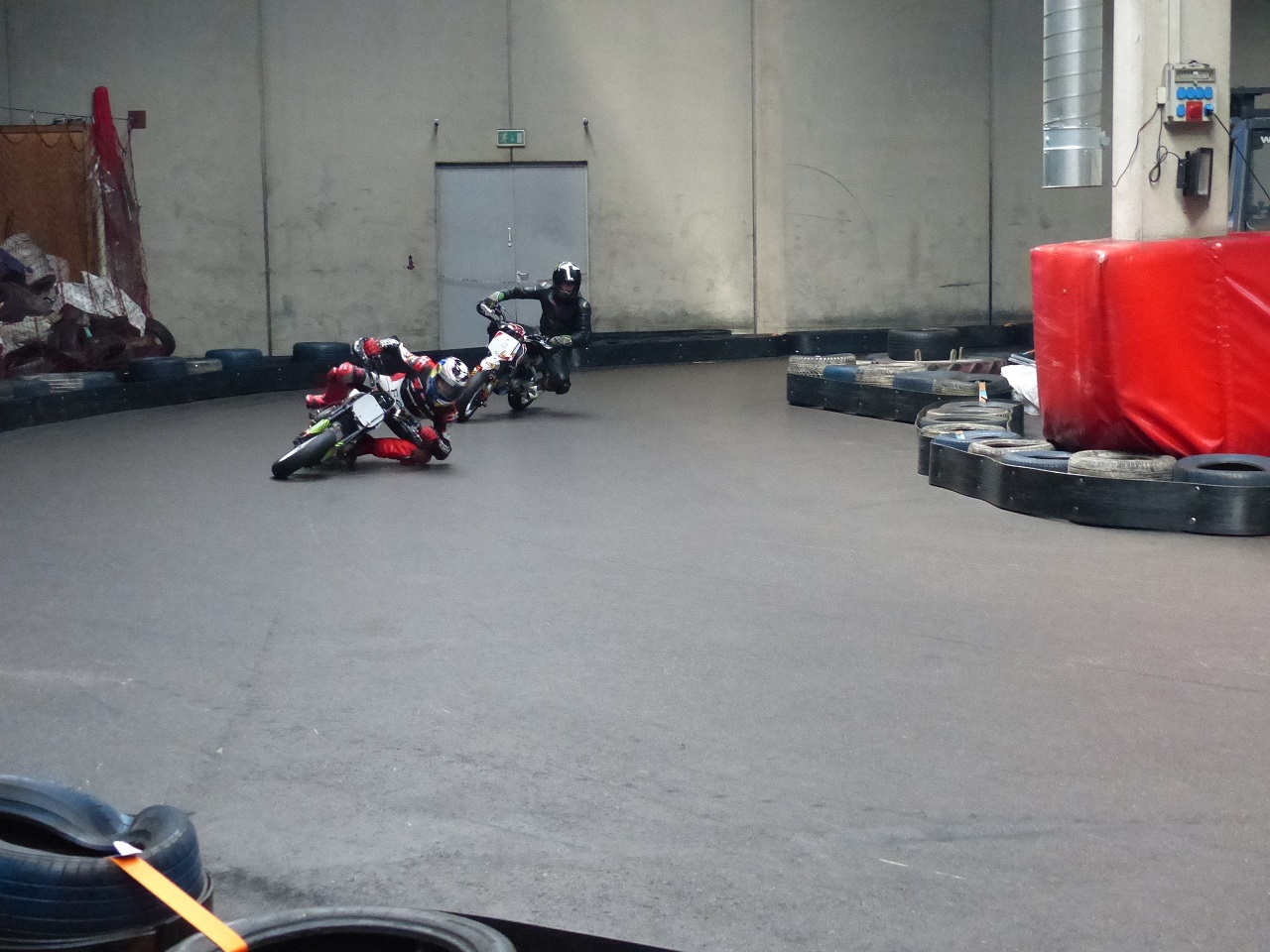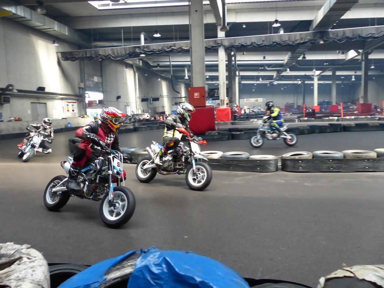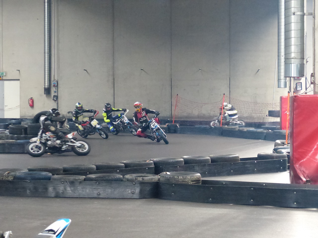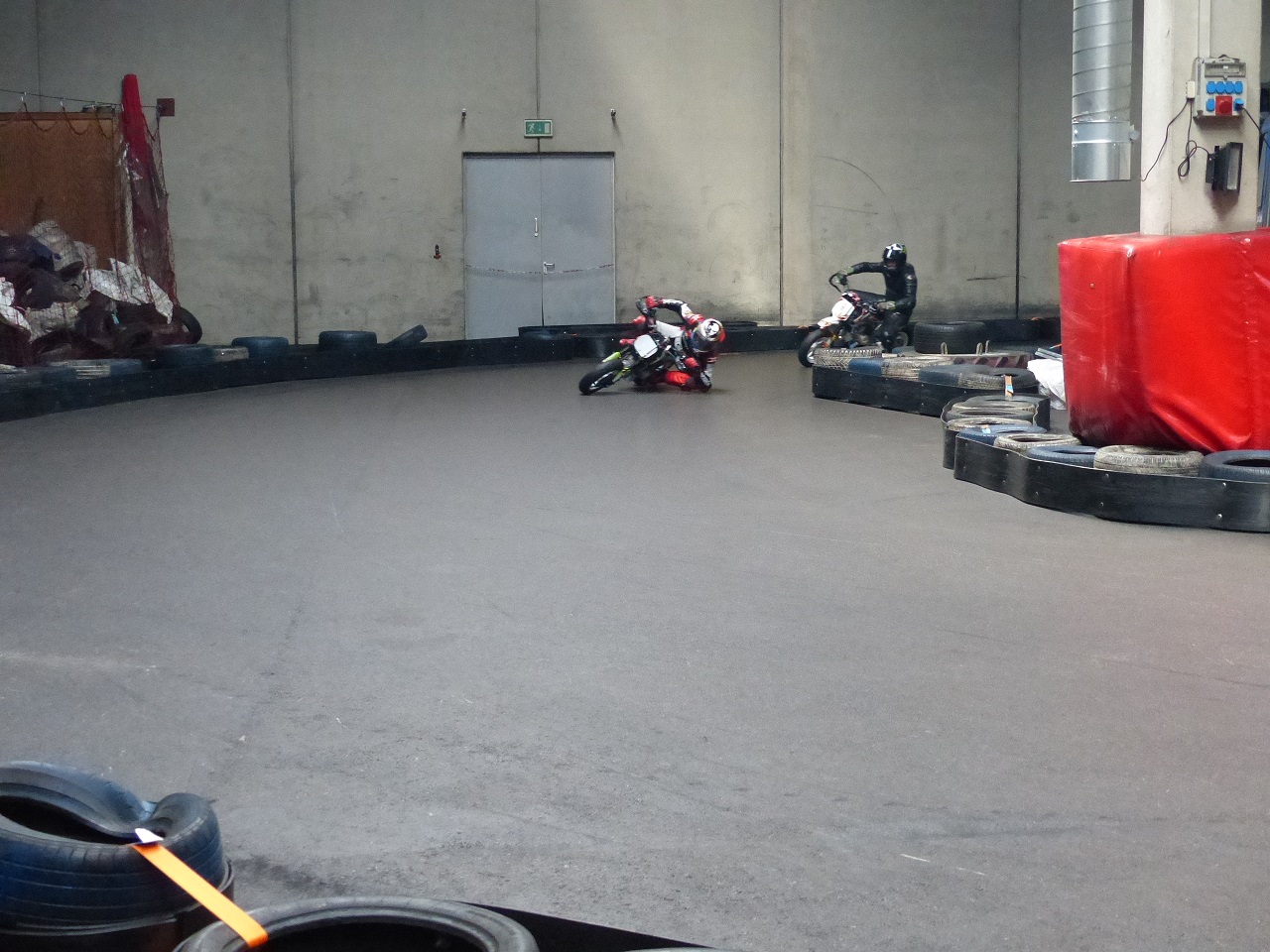 Das Rennen wurde stehend gestartet, wobei der ein oder andere wirklich stand oder nur sehr schwer in Schwung kam, aber 7-8 Pit-Bikes gemeinsam in die erste Kurve…ja doch...wie auf der Rennstrecke, nur bisschen kleiner. :D