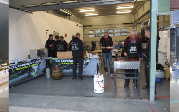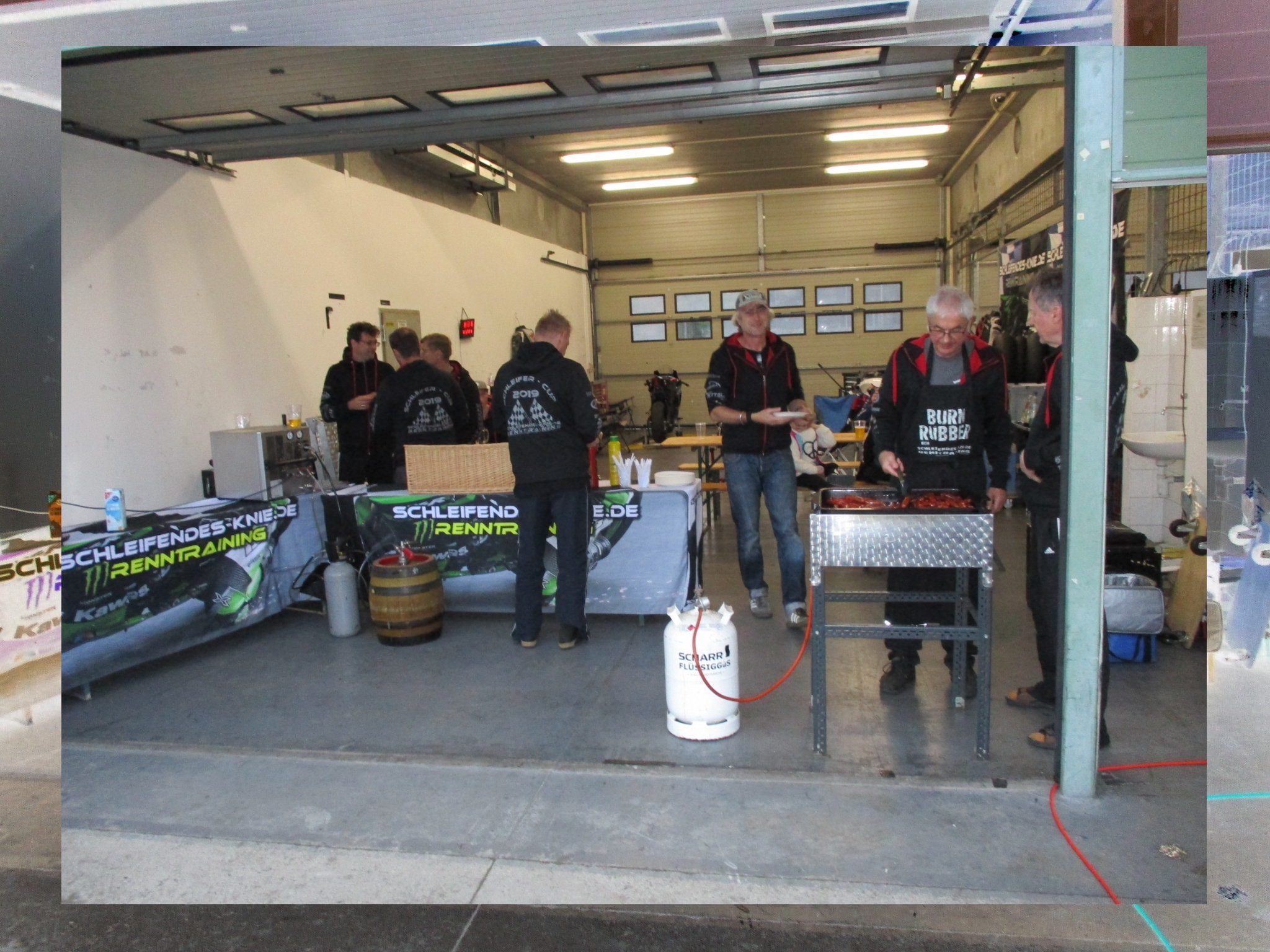 Genau, als die Strecke wieder für die Nicht-Rennteilnehmer frei gegeben wurde, fing es an zu regnen. Somit gingen alle übrigen Schleifer zum gemütlichen Teil des Tages über. Nach den Siegerehrungen am Abend, wurde von Stefan H. wieder fleißig gegrillt und der Hopfensmoothie vom Fass war auch sehr begehrt.