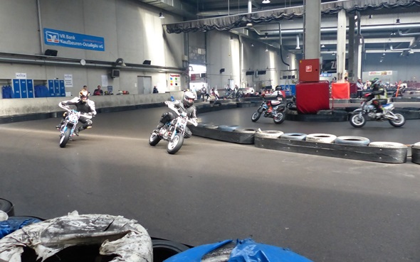 Fun pur…in zwei einzelne Stints wurde die Zweiradmeute dann auf die Kartbahn losgelassen und wenn auch unsere Rennstreckenfreunde aus dem Allgäu einen Heimvorteil genossen, gestalteten sich die Rundenzeiten doch ziemlich ausgeglichen.