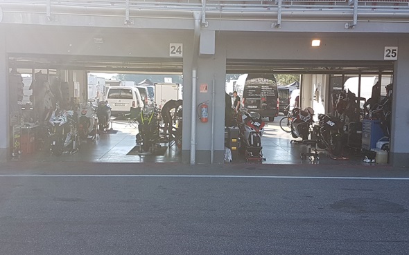 Dies funktionierte hervorragend, da die tropischen Temperaturen weit jenseits der 30°C, keine „longrun´s“ zuließen und eigentlich jeder Teilnehmer freiwillig nach 5-6 Runden wieder in die Box oder ins Fahrerlager zurückkehrte und Abkühlung suchte. Daher kam es nicht wiedererwartend zu übermäßigem „traffic“ auf der Strecke, ebenso mussten auch die Teilnehmer nicht in der Boxengasse warten, weil eventuell zu viele Bikes gleichzeitig auf der Strecke unterwegs waren.