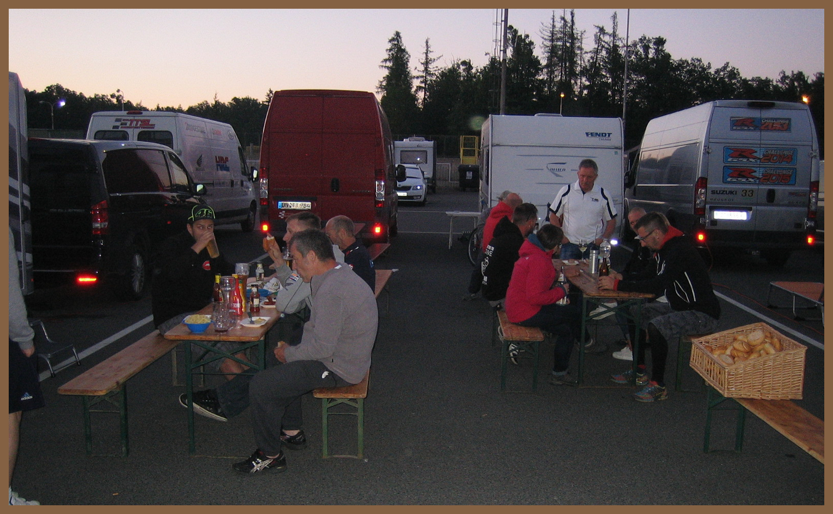 Nik und Nobbi gesellten sich am Abend nach den Siegerehrungen noch dazu, während im Fahrerlager noch kleinere Reparaturen und Einstellungsarbeiten durchgeführt wurden, aber der Großteil der Schleifer den ersten Tag eigentlich gemütlich ausklingen lassen konnte.