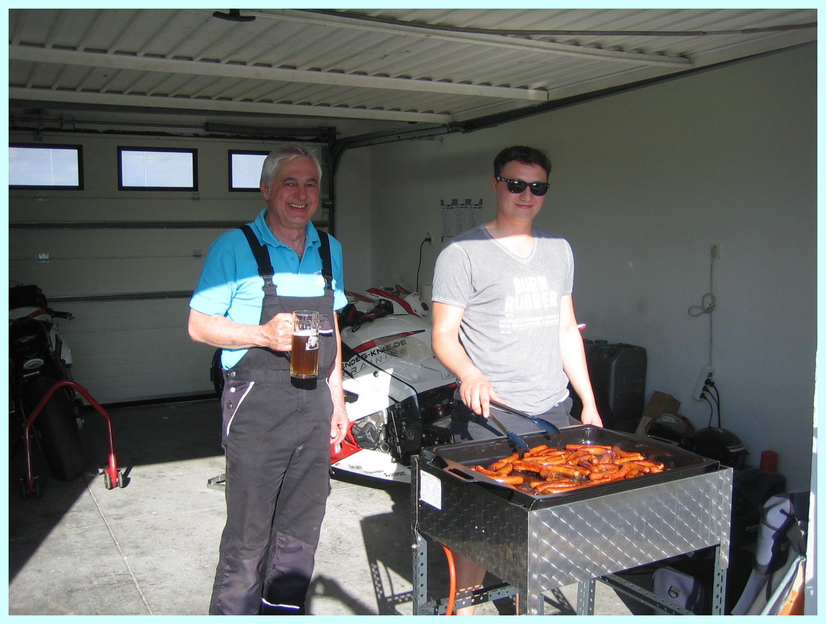 Während nach der Siegerehrung am Abend nochmals Optimierungen an einigen Bike´s durchgeführt wurden, konnten die restlichen Schleifer den zweiten Tag gemütlich ausklingen lassen. Grillmeister Stefan H. und Christian H. versorgte die ganze Truppe wieder mit scharfen Käsegrillwürstchen und Freibier.