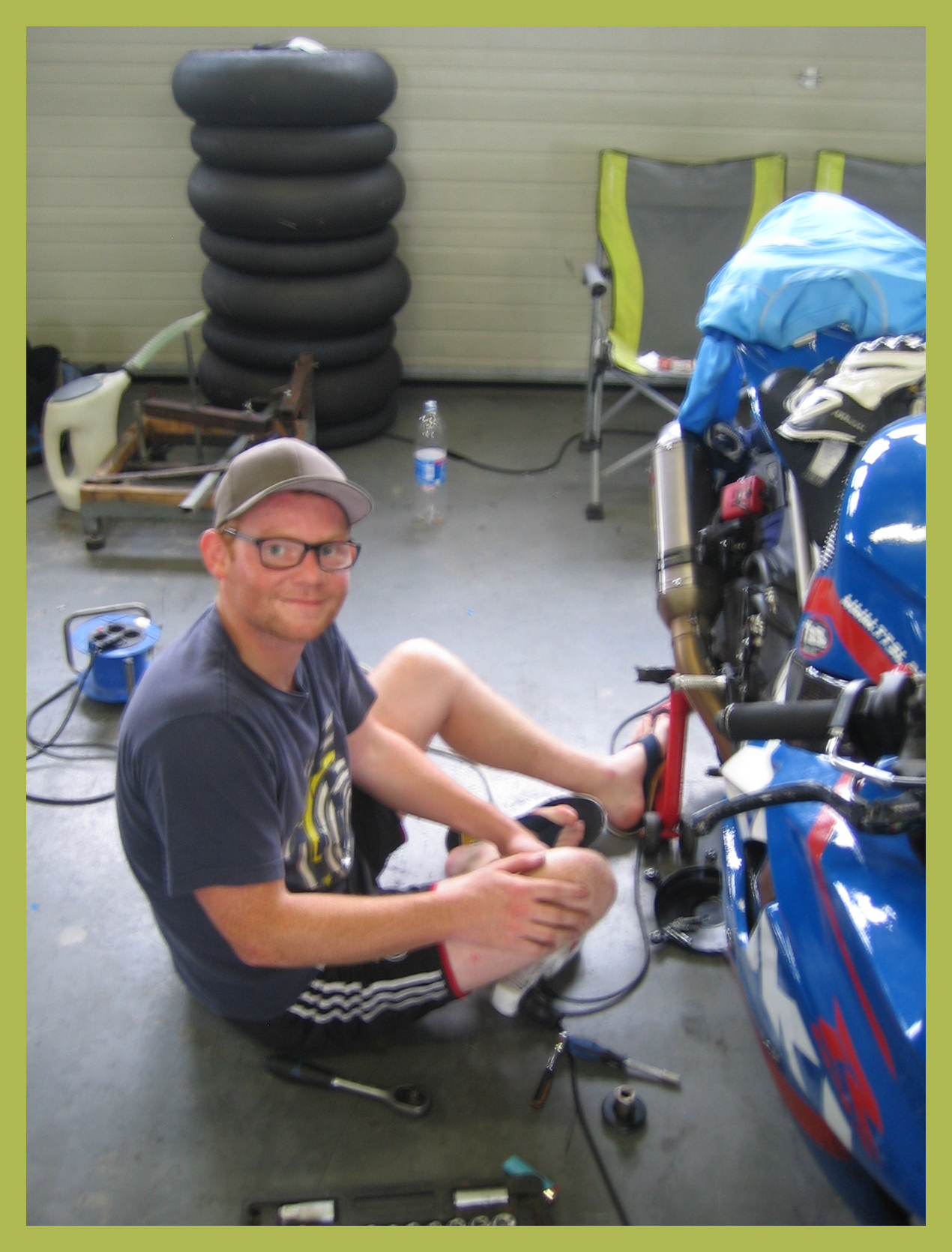 Das hieß fleißiges hin- und herwechseln zwischen den beiden Mopeds, wobei er die SBK1000er Rennen mit der BMW und das 2h-Endurance Rennen mit seinen Markenkollegen Franz und Nobbi mit der ZX10R bestritt.